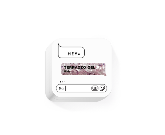 Terrazzo Gel è una collezione di quattro tonalità di gel contenenti glitter di varie forme.